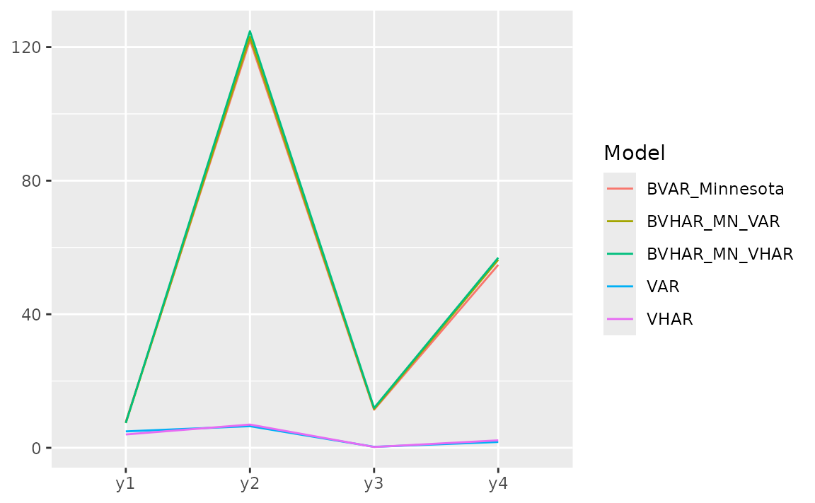 #> VHAR VAR BVAR BVHAR1 BVHAR2